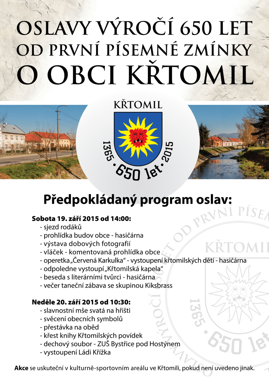Ve dnech 19. a 20. září 2015 proběhly za velkého zájmu obyvatel obce i návštěvníků ze širokého okolí oslavy 650 od první písemné zmínky o obci Křtomil.