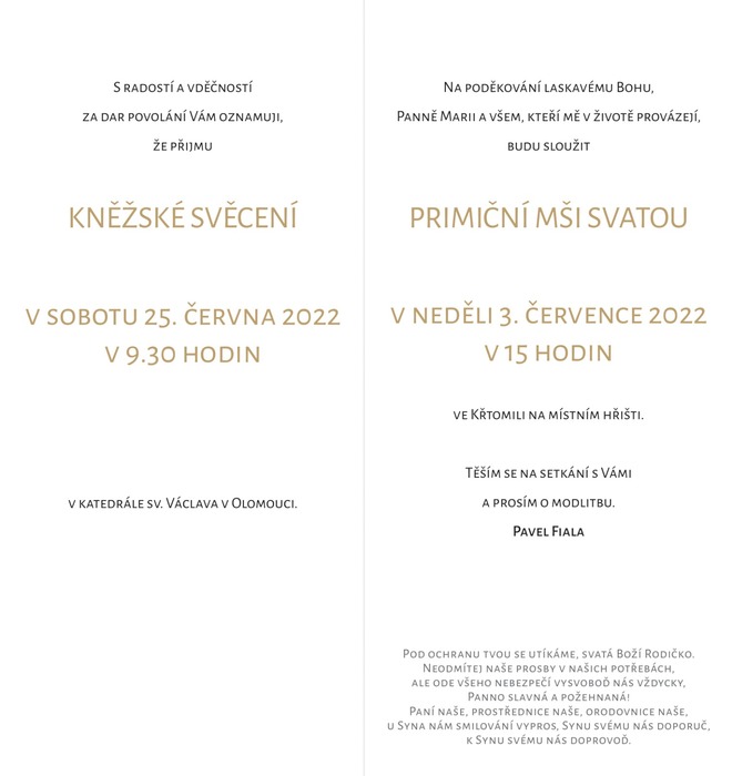 Úvod > Život v obci > Akce v naší obci > Pozvánka - primice