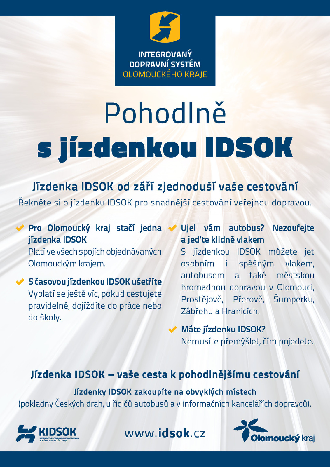 Od září 2016 je možné díky jízdence IDSOK pohodlněji a výhodněji cestovat veřejnou dopravou v Olomouckém kraji