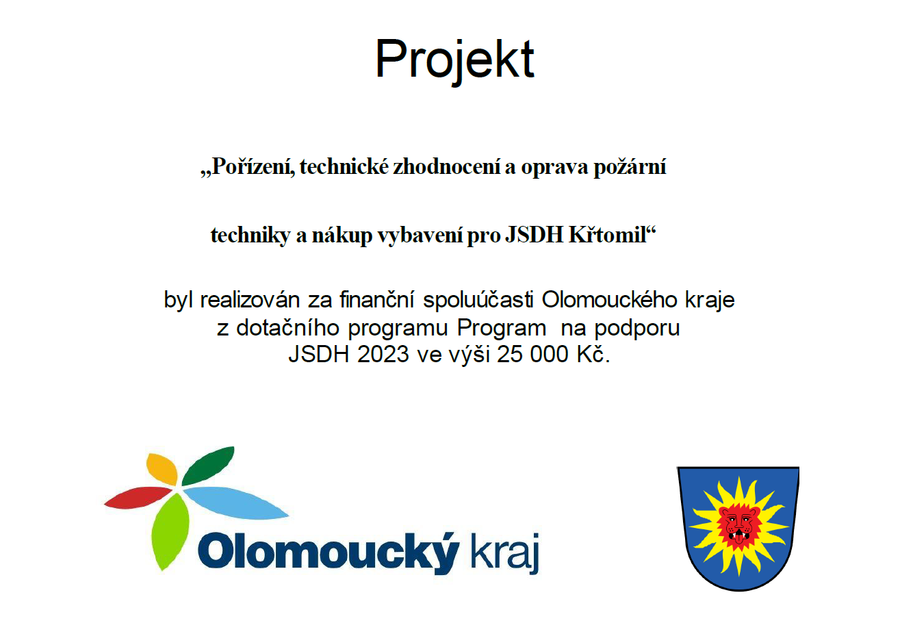 Úvod > Přijaté dotace > Dotace 2023 > Pořízení, technické zhodnocení a oprava požární techniky a nákup vybavení pro JSDH Křtomil